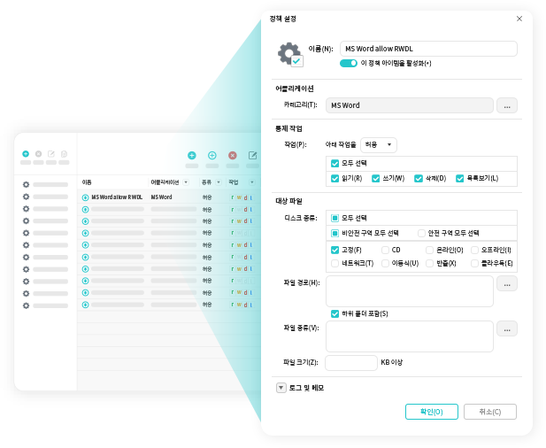 개인/부서별 맞춤 정책 생성 및 적용으로