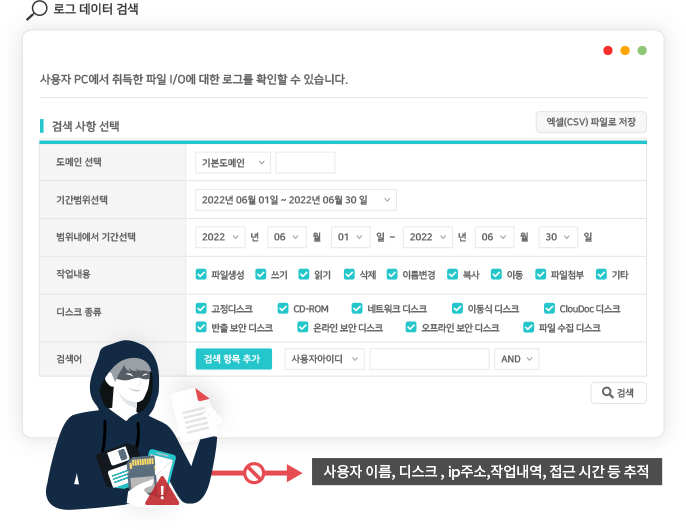 외근 PC의 반출디스크 입출력 로그부터