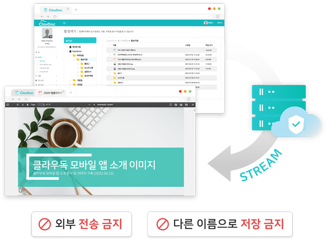문서를 공유할 때도, 별도의 브라우저에서 열리는 보안뷰어로