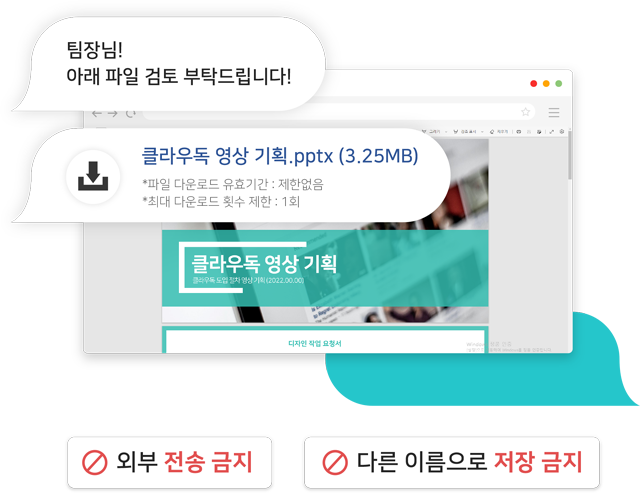 안전한 문서 링크 전달 기능으로 메신저/ 이메일을 통해