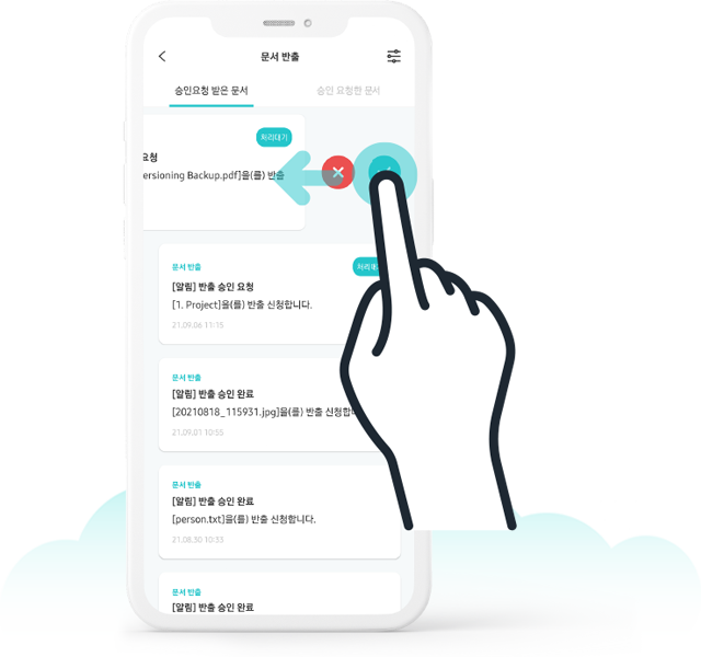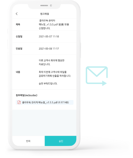 반출 알림을 옆으로 밀어 승인하거나, 반려하세요.